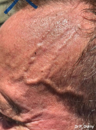 Certaines veines du visage, notamment au niveau des tempes ou du front ou même périorbitaires, qui habituellement ne se dilatent qu’à l’effort, peuvent avec le temps rester dilatées au repos et devenir l’objet d’un préjudice esthétique permanent.
